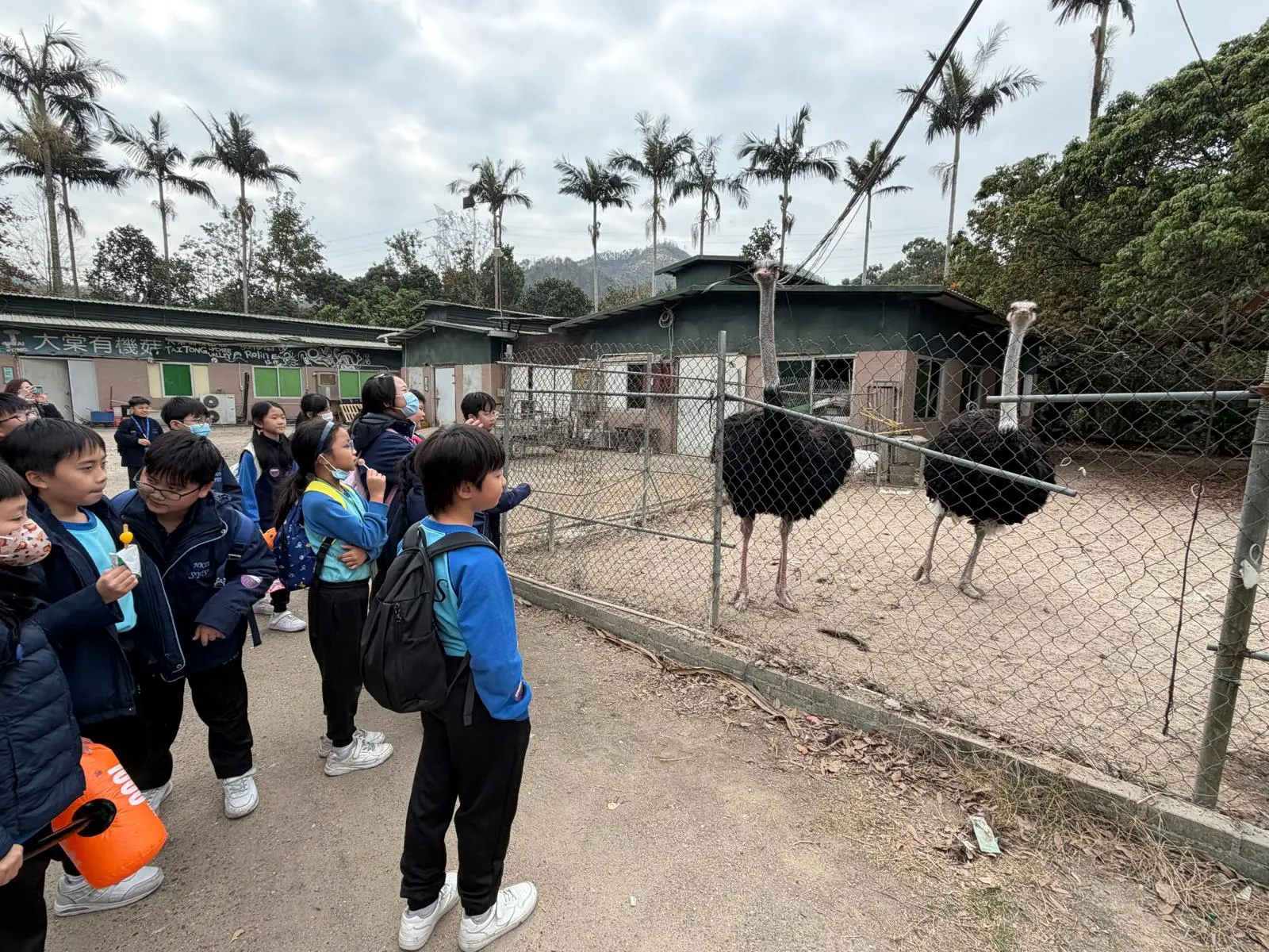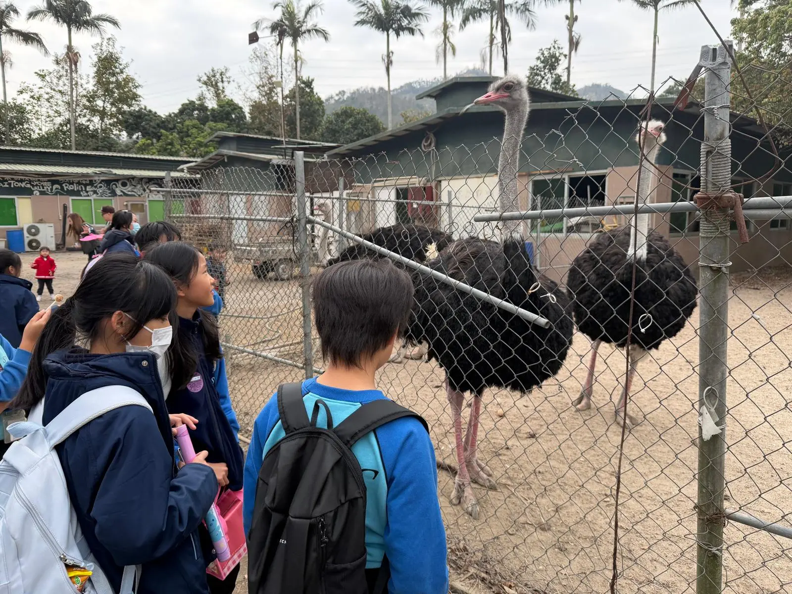 When it was twelve o’clock, we finally left the lawn. We walked and walked. I saw students from other classes playing happily, but we could only stand and watch the big ostriches. They looked a bit ugly and scary. One student asked the teacher, “Why can other students play, but we can’t?” The teacher answered, “Because you don’t have parents with you.” But we noticed that those students didn’t have parents either, yet they were allowed to play. We felt very angry and unfair.